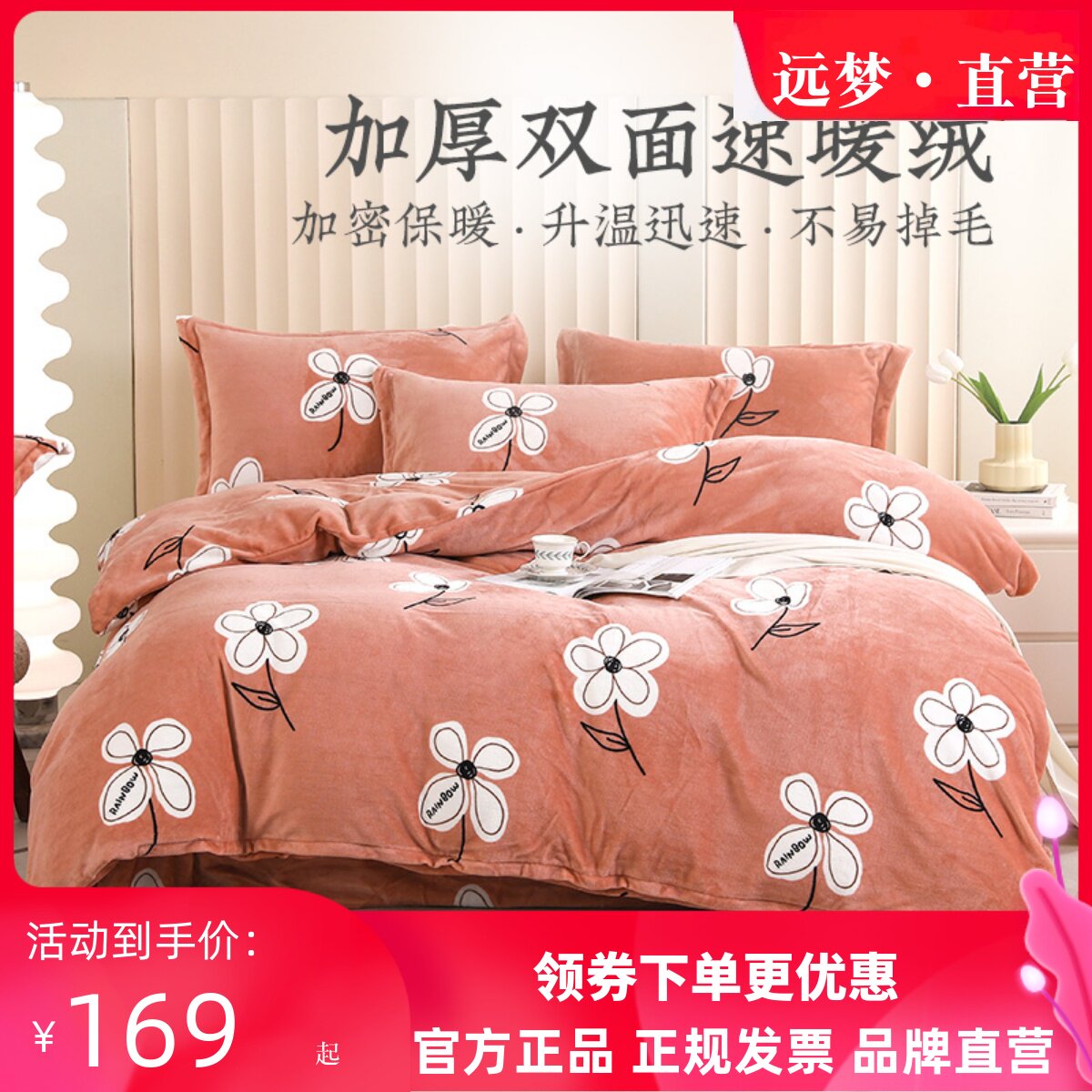 远梦乐芙绒印花床单四件套珊瑚绒三件套学生宿舍双面暖绒加厚冬季