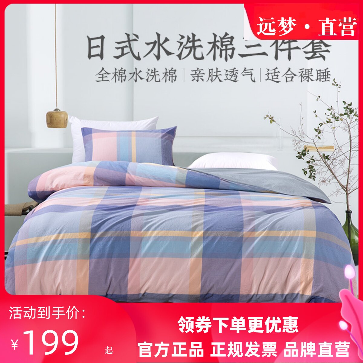 远梦日式水洗纯棉套件学生宿舍床上三件套单人家用双人四件套全棉