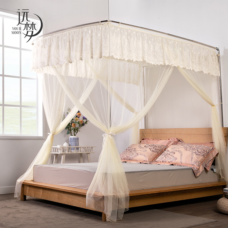 远梦蚊帐 欧式任意伸缩加密防蚊三开门高档女王风U型加粗支架帐子