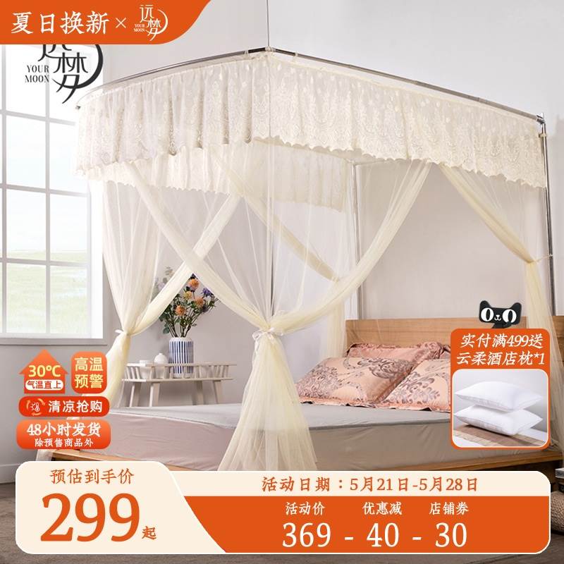 远梦可伸缩蚊帐家用方便拆洗u型轨道带支架固定公主风1.5米易安装