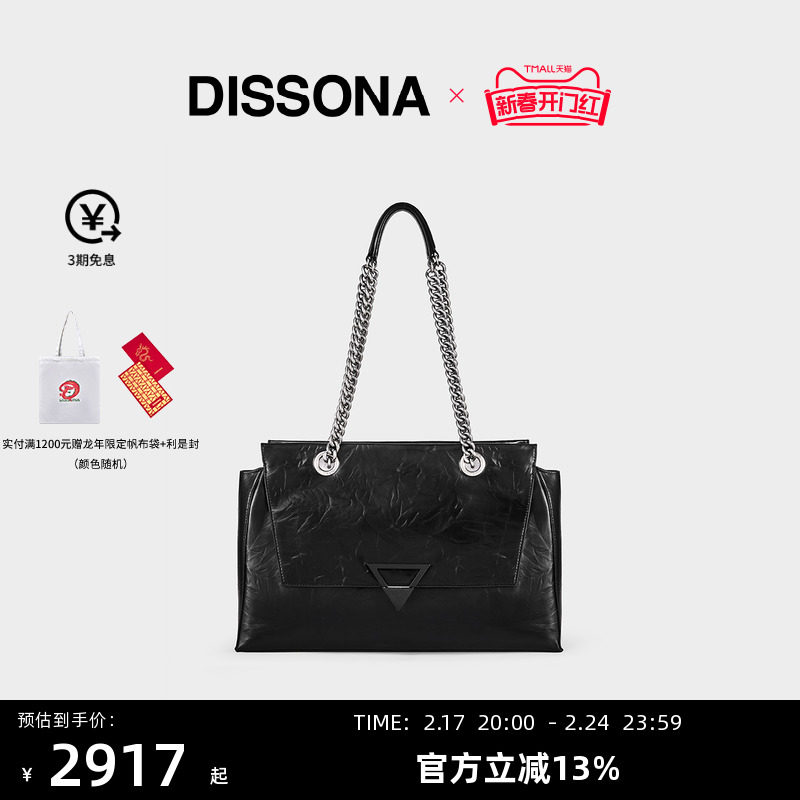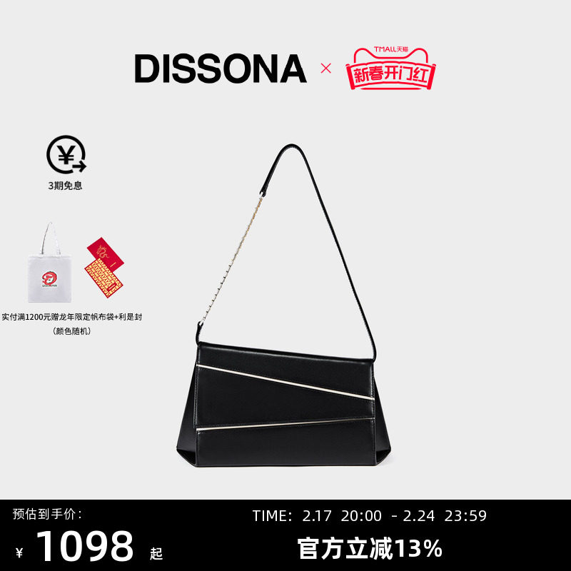 DISSONA迪桑娜女包GEO符号腋下包大容量真皮手提包高级单肩链条包