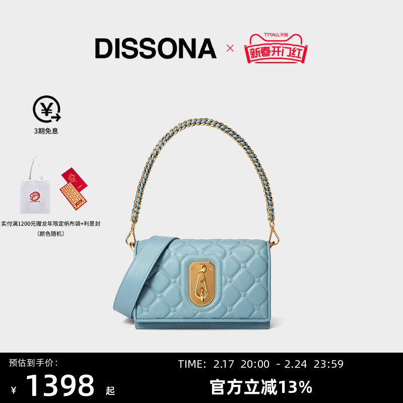 DISSONA迪桑娜女包星盘锁单肩斜挎包菱格链条包高级感手提小方包