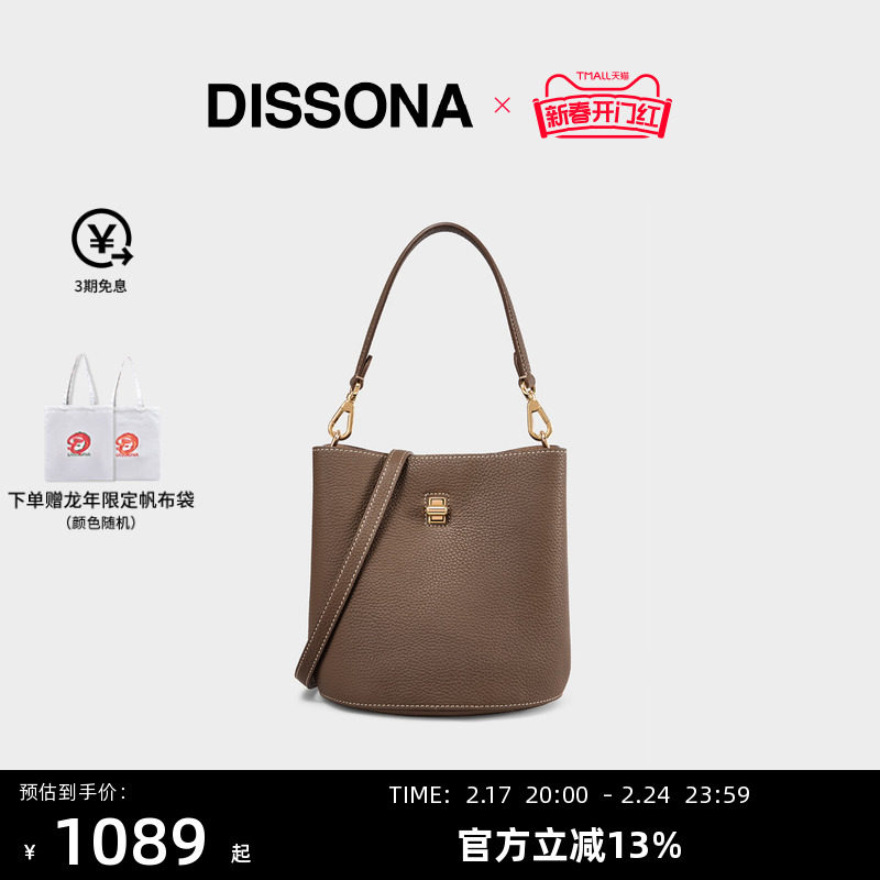 DISSONA迪桑娜女包至简小包包通勤手提包真皮水桶包单肩包斜挎包