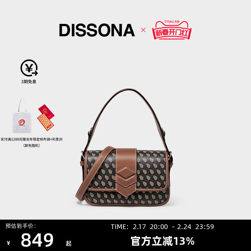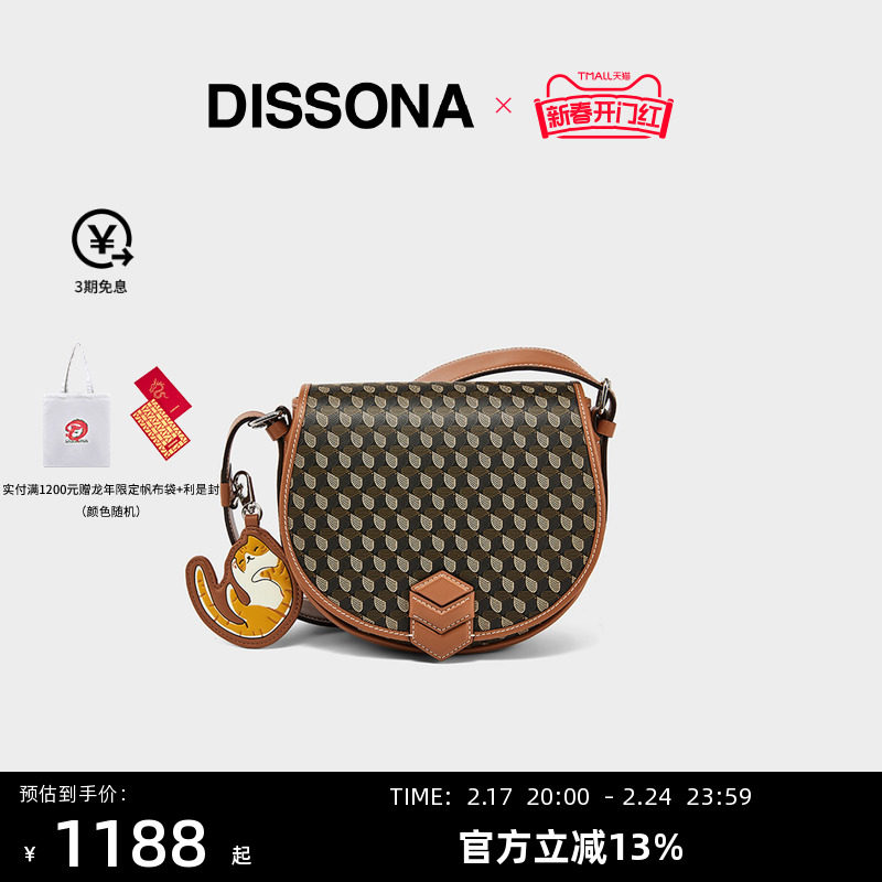 DISSONA迪桑娜女包幸运锦囊新款单肩斜挎包复古老花包高级马鞍包