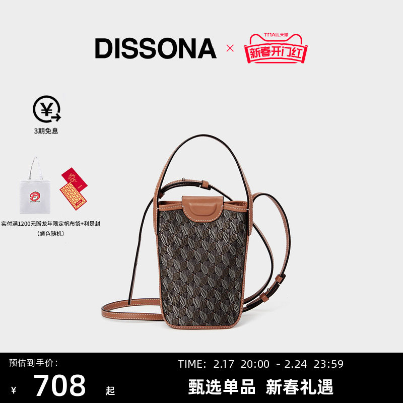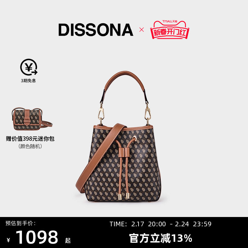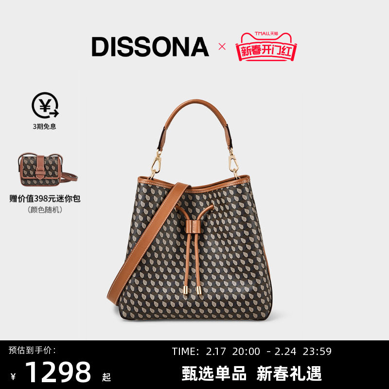 DISSONA女包幸运锦囊老花包单肩斜挎包手提包大容量通勤包水桶包