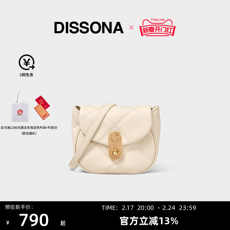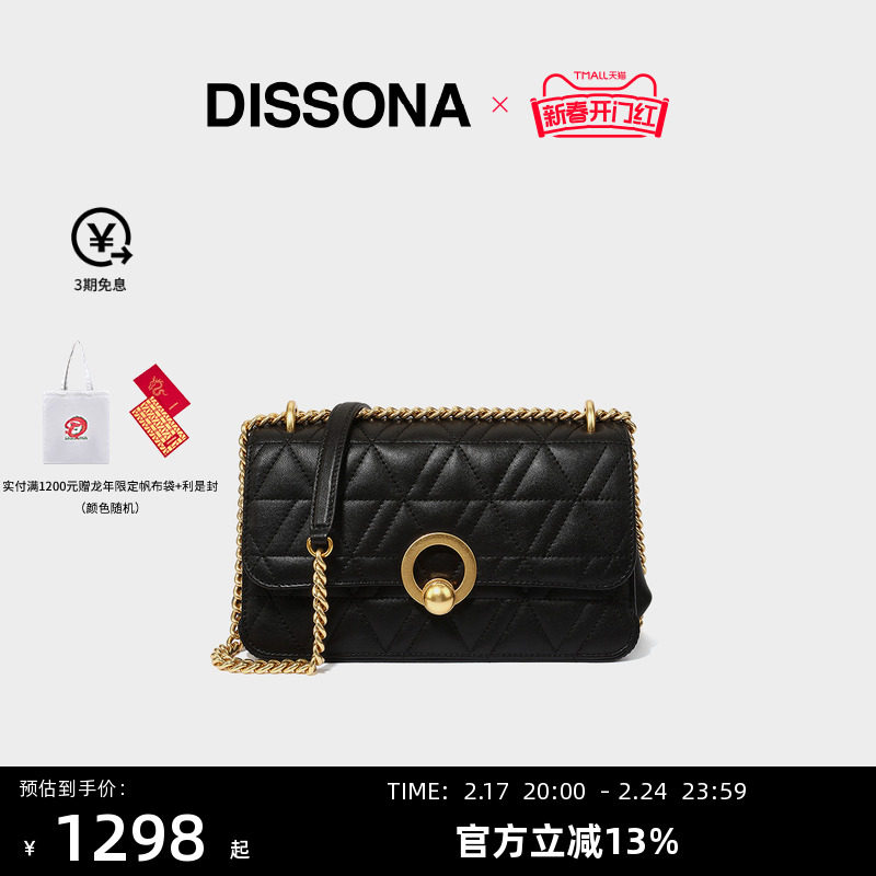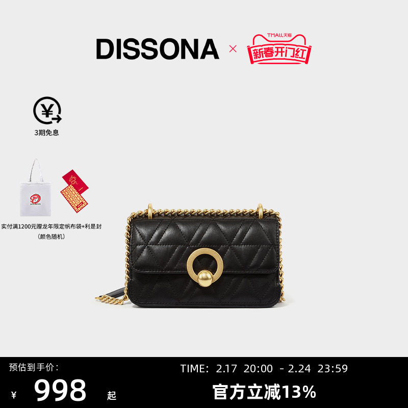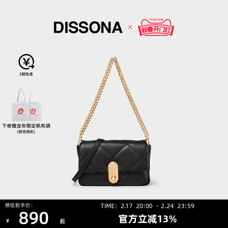 DISSONA迪桑娜女包星盘锁高级感单肩斜挎包通勤小方包菱格链条包
