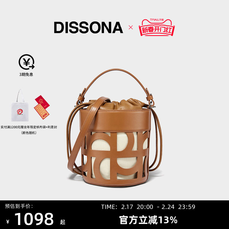 DISSONA迪桑娜包包风车系列单肩斜挎包时尚手提包真皮水桶包女包