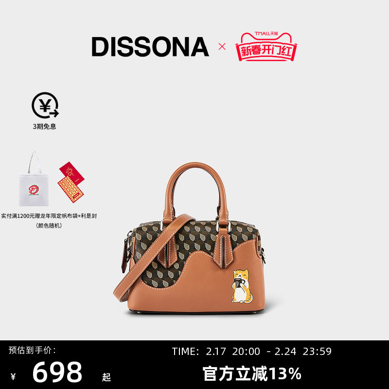 DISSONA迪桑娜猫咪包新款波士顿枕头包老花手提包单肩斜挎包女包