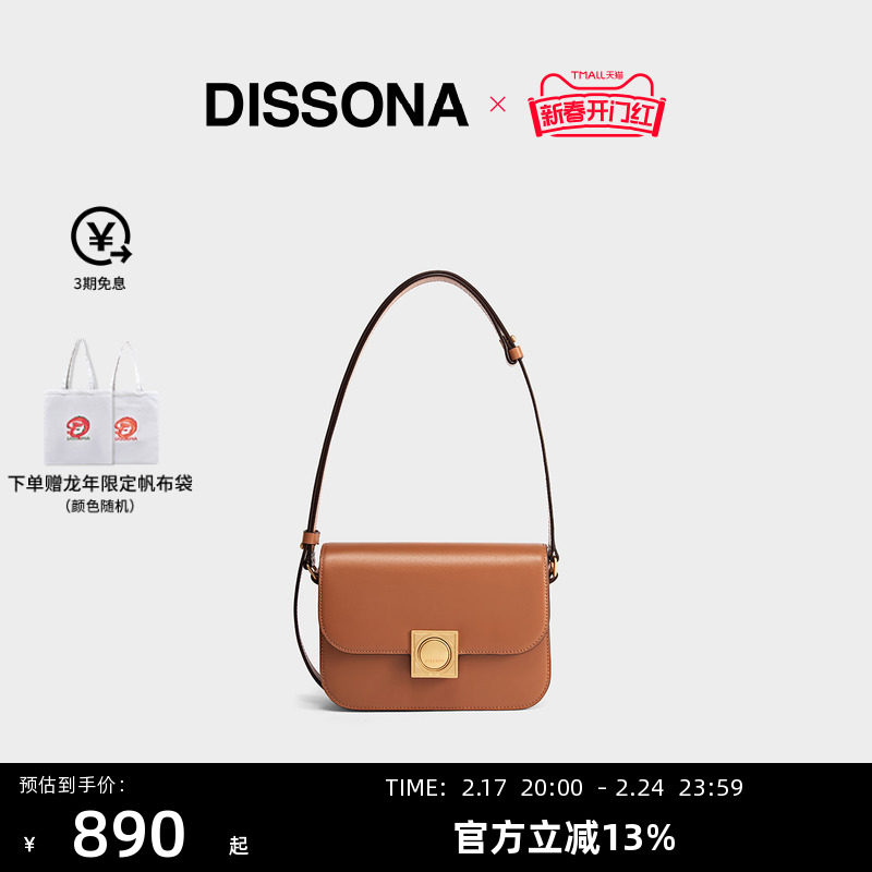 DISSONA迪桑娜包包开关真皮女包小众手提小方包单肩斜挎包