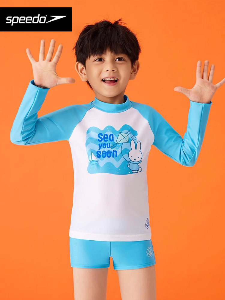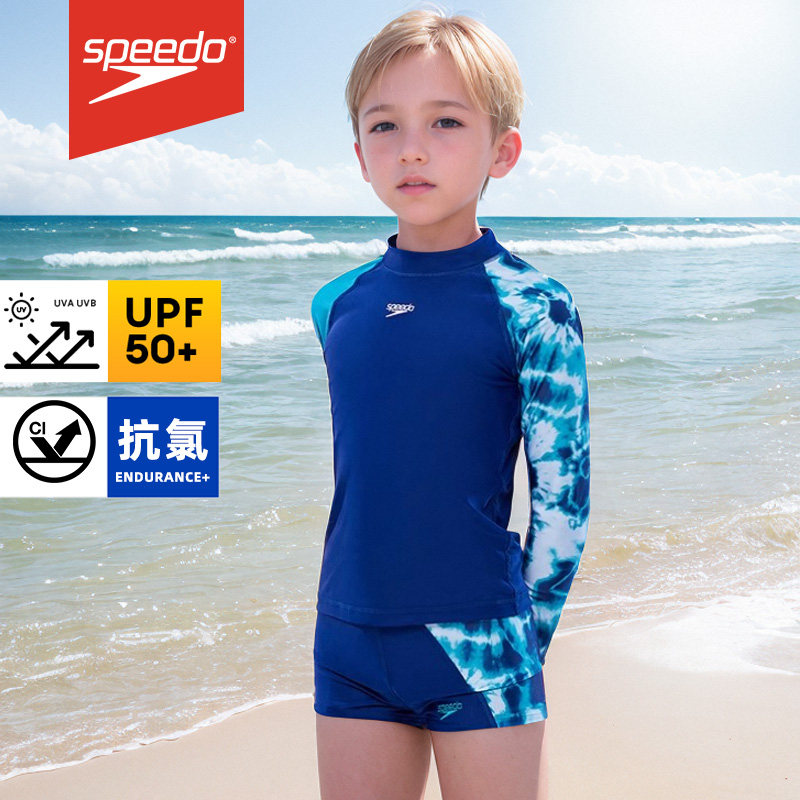 Speedo/速比涛儿童泳衣男童分体速干抗氯印花防晒长袖泳衣套装