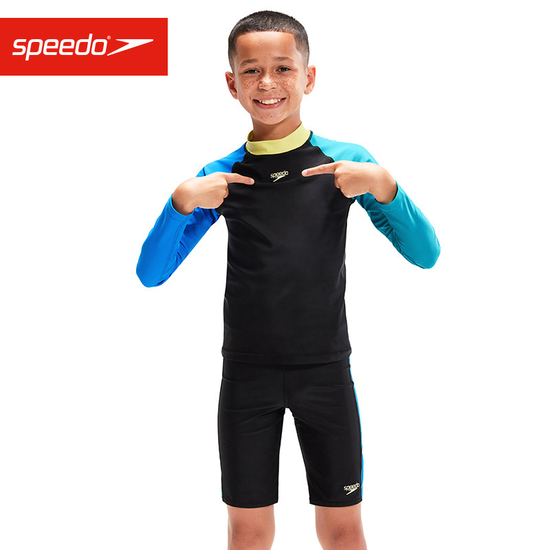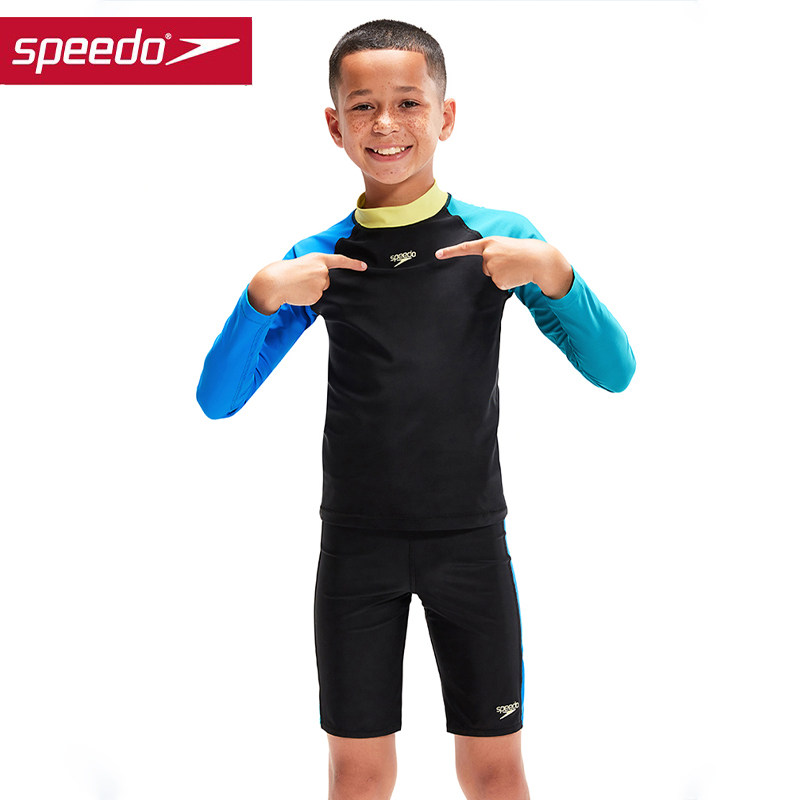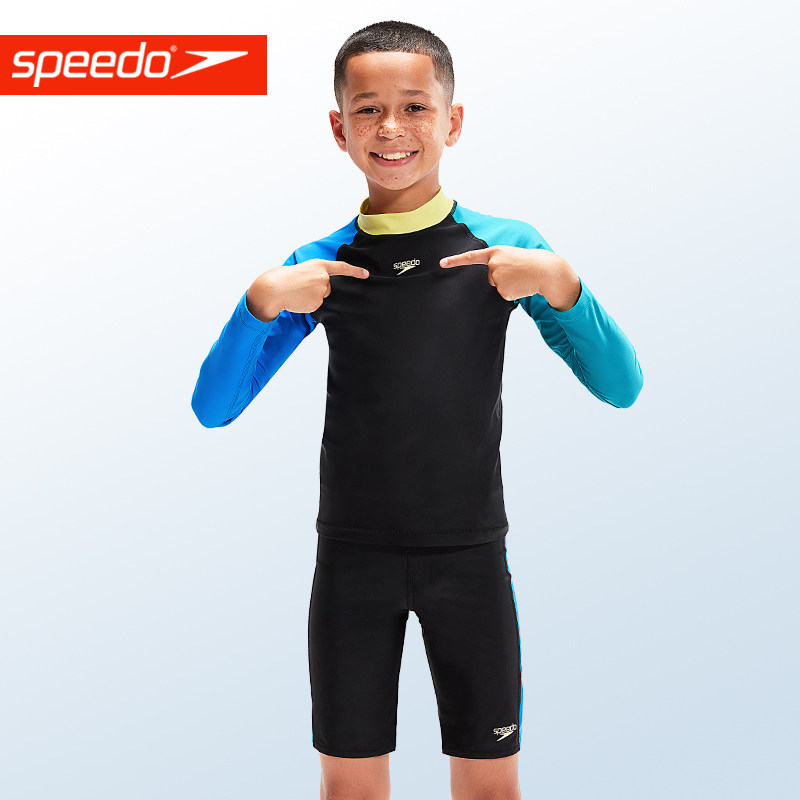 Speedo儿童长袖及膝分体泳衣防晒保暖冲浪速干海边泡温泉男童女童