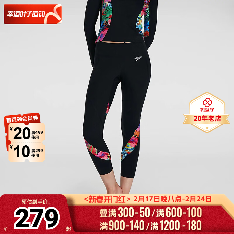 Speedo速比涛女士专业训练冲浪泳裤女士分体式泳衣印花紧身中长裤