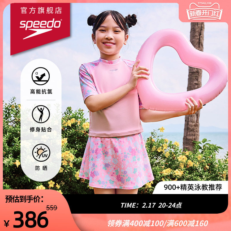 Speedo/速比涛 花啦啦系列儿童印花短袖分体裙摆泳衣女童2024新品