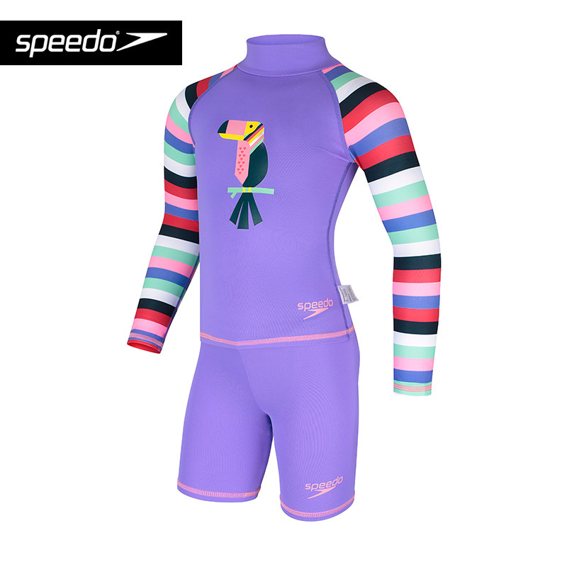 speedo儿童分体泳衣男女童长袖水上冲浪防晒泡温泉休闲游泳衣