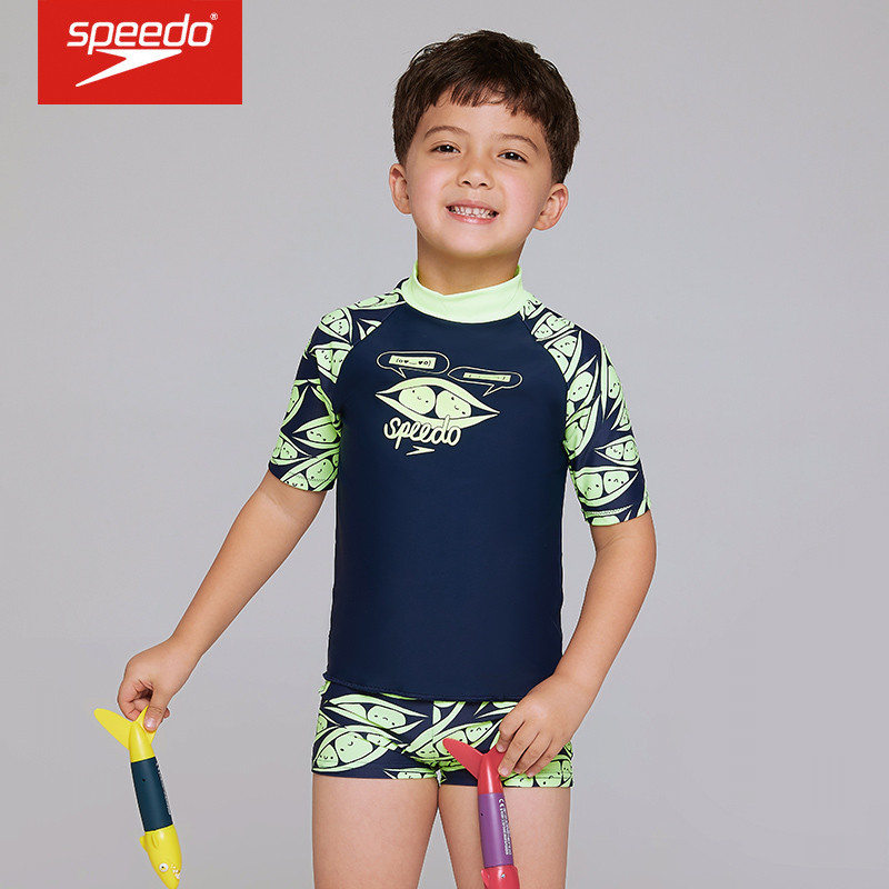 Speedo速比涛儿童青少年泳装男童分体防晒速干泳衣时尚印花