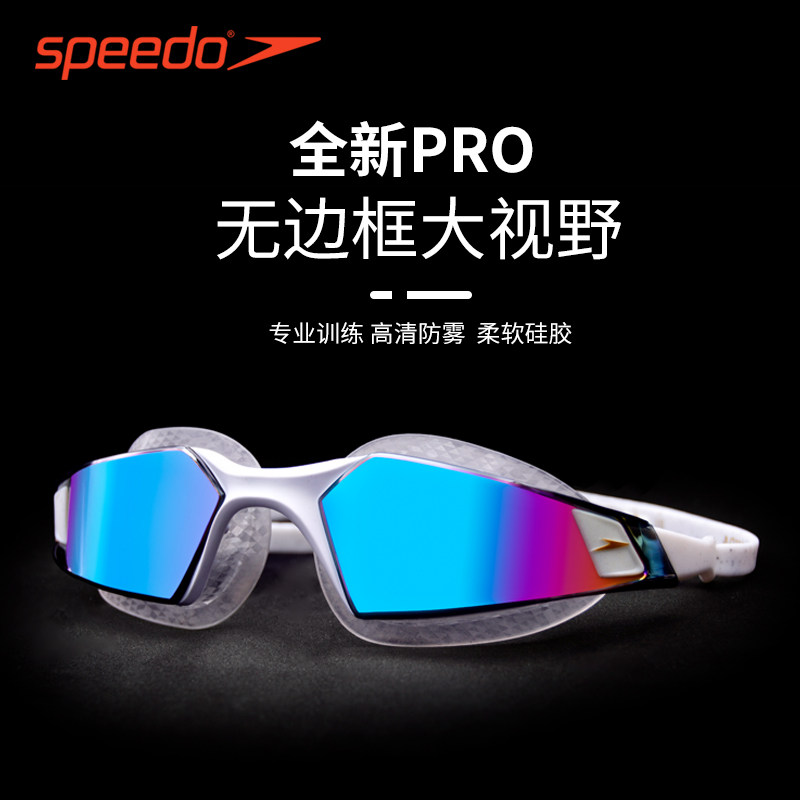 speedo速比涛泳镜女专业训练镀膜大框潜水镜防水防雾高清游泳眼镜