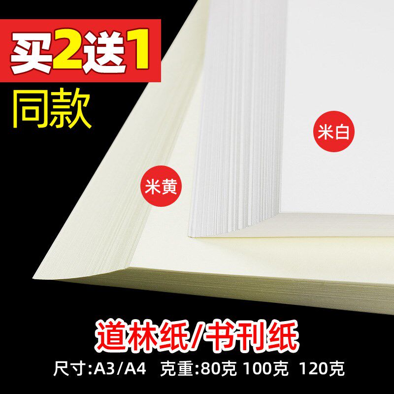 道林纸A4a3打印资料纸80克100g米黄琴谱护眼纸A5笔记本内页手账书刊纸120g150g180g米白书写练字绘画试卷复印