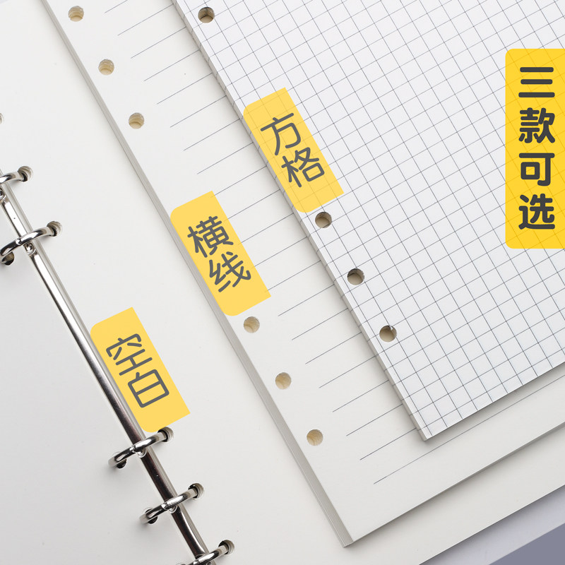 A4活页纸B5活页笔记本子替换芯6孔9孔活页替芯A6A7记事本空白方格网格英语错题手帐本道林活页本A5内页芯定制