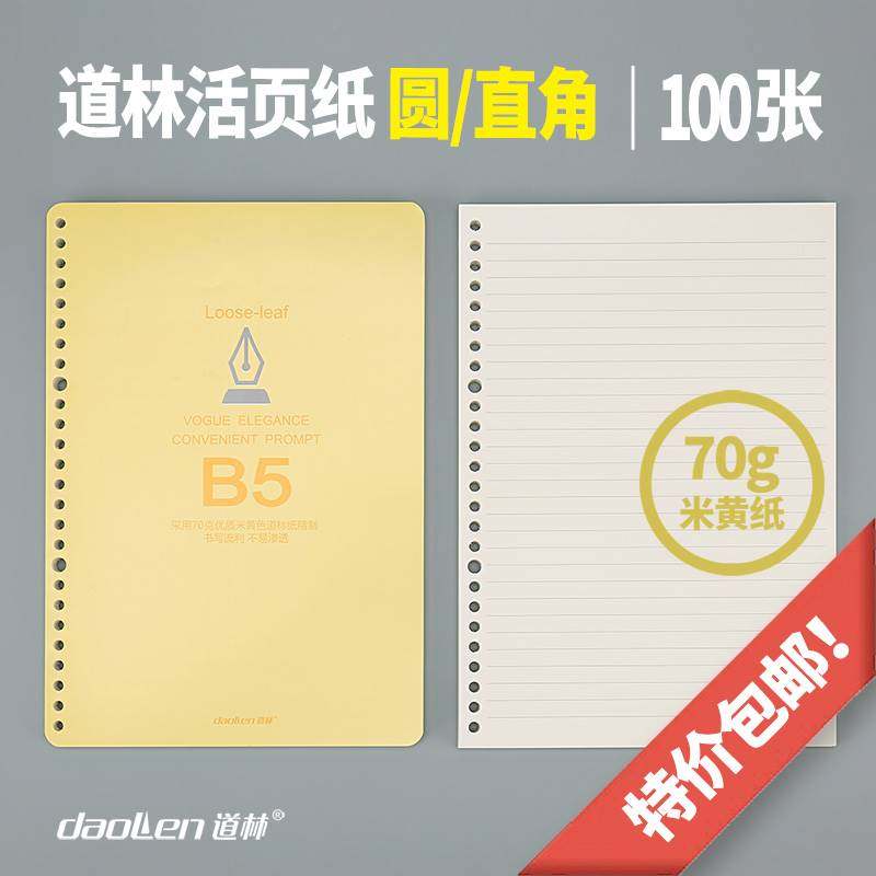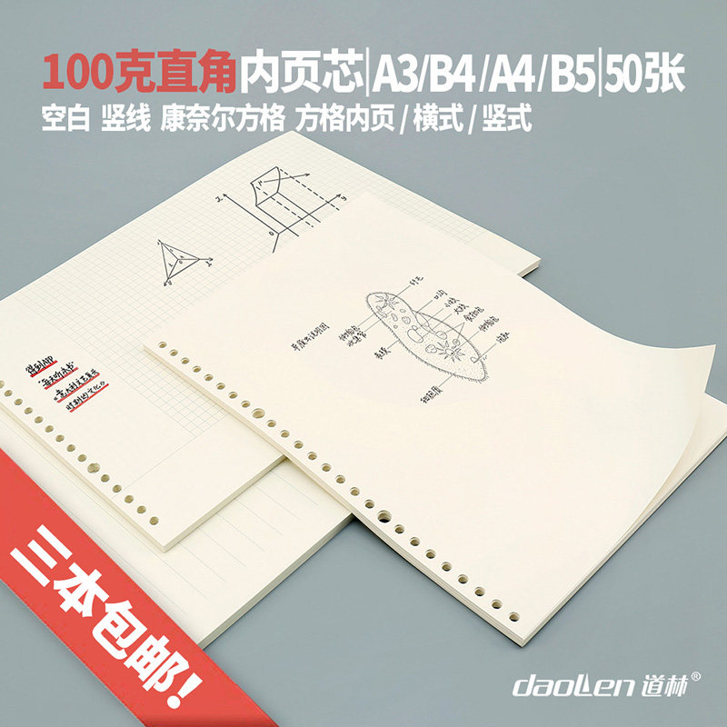 道林活页纸替芯100张b5方格A4横线条a5网格子空白四线三格英语学生笔记本子70g内页26孔文具方直角替换纸30孔