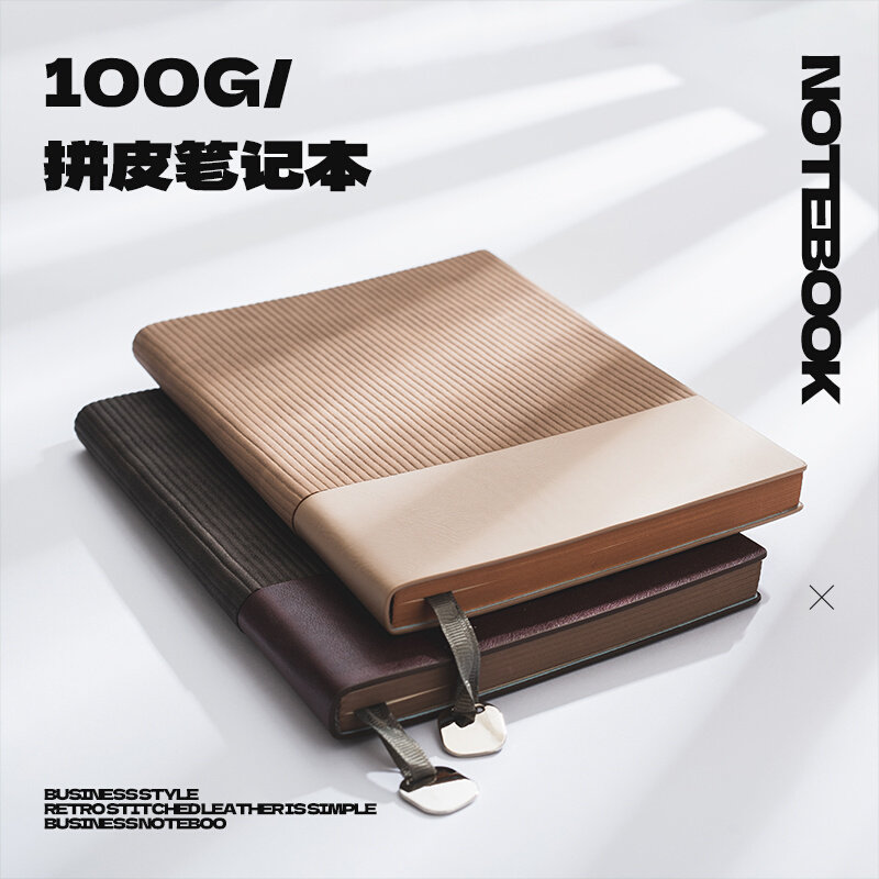 2022年笔记本本子新款加厚100g道林纸复古商务极简竖条纹记事本文艺日记本定制LOGO拼接皮软面抄工作手账本