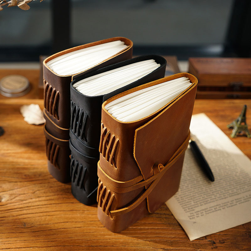 绑绳空白手绘疯马皮笔记本古风软皮手工道林纸复古简约记事本本子