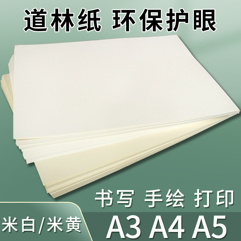 道林纸A4a3打印资料纸80克100g米黄琴谱护眼纸A5笔记本内页手账书刊纸120g150g180g米白书写练字绘画试卷复印