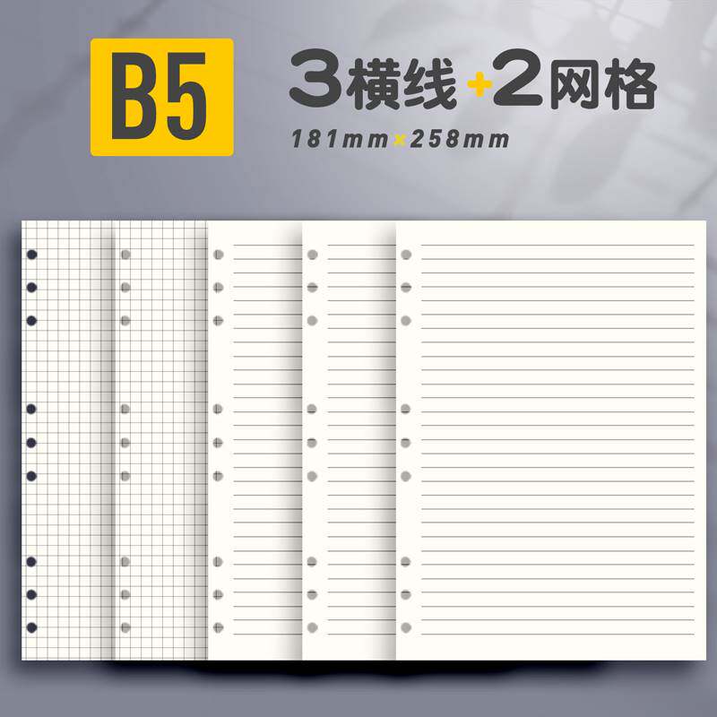 300张 道林b5活页纸加厚横线a4网格替芯a5活页本笔记本子可拆卸26