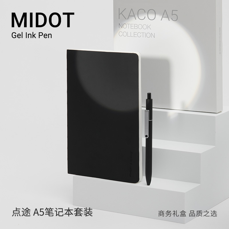 KACO爱乐A6随身笔记本套装PU软面本道林纸记事本+智途0.5黑色中性笔 高档商务会议礼品防水防污收纳卡包ALIO