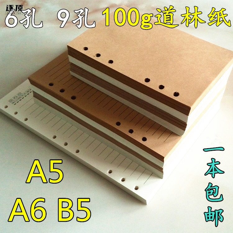 加厚100克 B5活页本A5替芯6孔26孔9孔内芯方格加厚大笔记本道林牛皮纸白纸手帐格子横纹空白