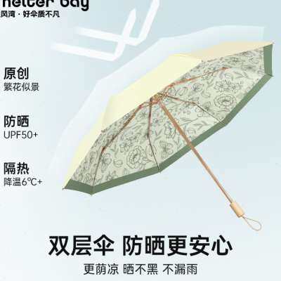 避风湾防晒伞防紫外线太阳伞防晒遮阳伞女晴雨两用雨伞双层折叠伞
