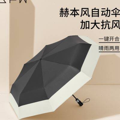避风湾自动雨伞女晴雨两用太阳伞遮阳折叠自动伞加大加固加厚雨伞