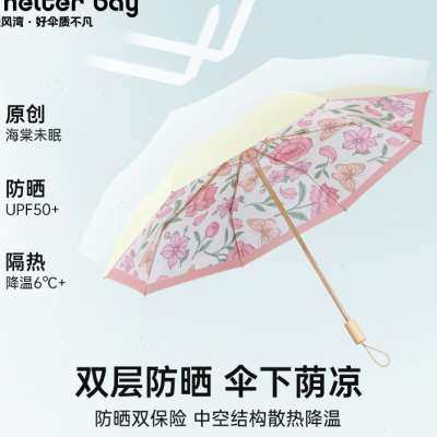 避风湾防晒伞防紫外线太阳伞防晒遮阳伞女晴雨两用雨伞双层折叠伞