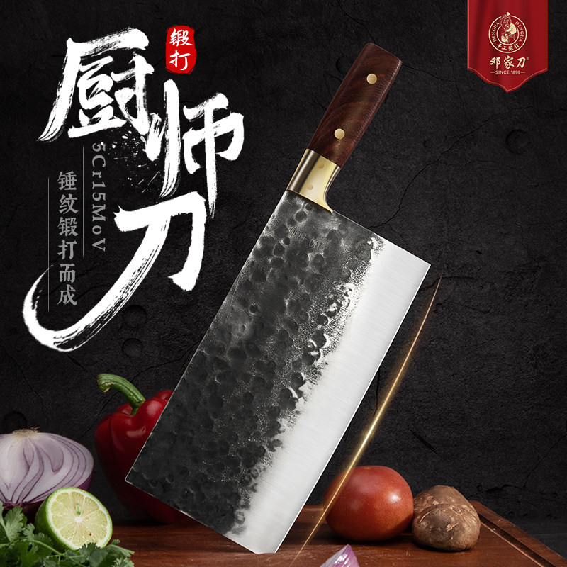邓家刀厨师专用菜刀5铬钼钒钢锤纹锻打商用切片刀切肉刀切菜刀具