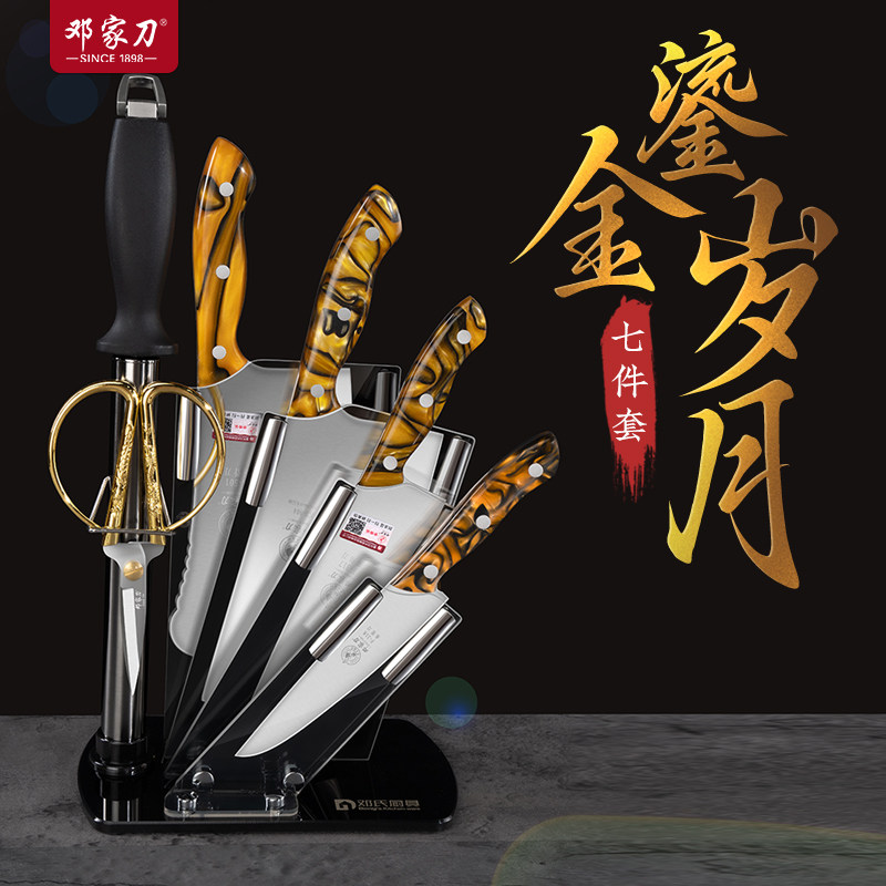 邓家刀家用亚克力套菜刀七件套组合精品厨房刀具套装锻打菜刀套刀