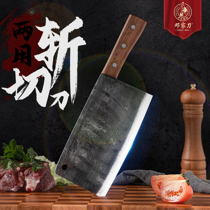 邓家刀碳钢菜刀斩切两用刀家用切高碳夹钢刀斩鸡鸭鱼骨传统锻打刀
