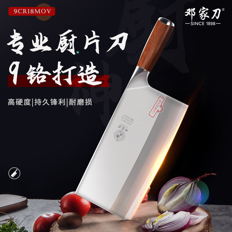 邓家刀9铬钢厨师刀专业菜刀家用切片刀超薄锋利锻打厨房夹钢厨刀