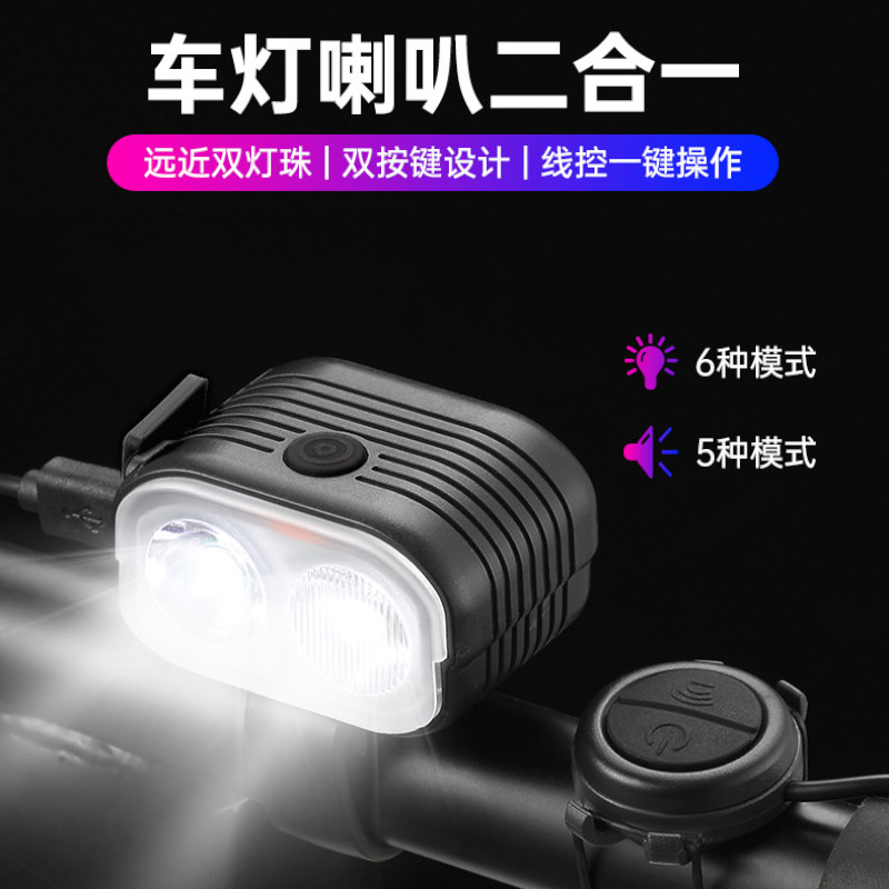 山地车夜骑灯自行车铃铛电喇叭超响通用公路车车前灯单车骑行装备