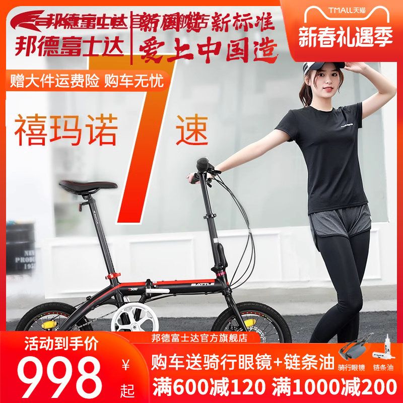 邦德富士达折叠自行车16寸铝合金7速超轻便成人男女城市学生单车