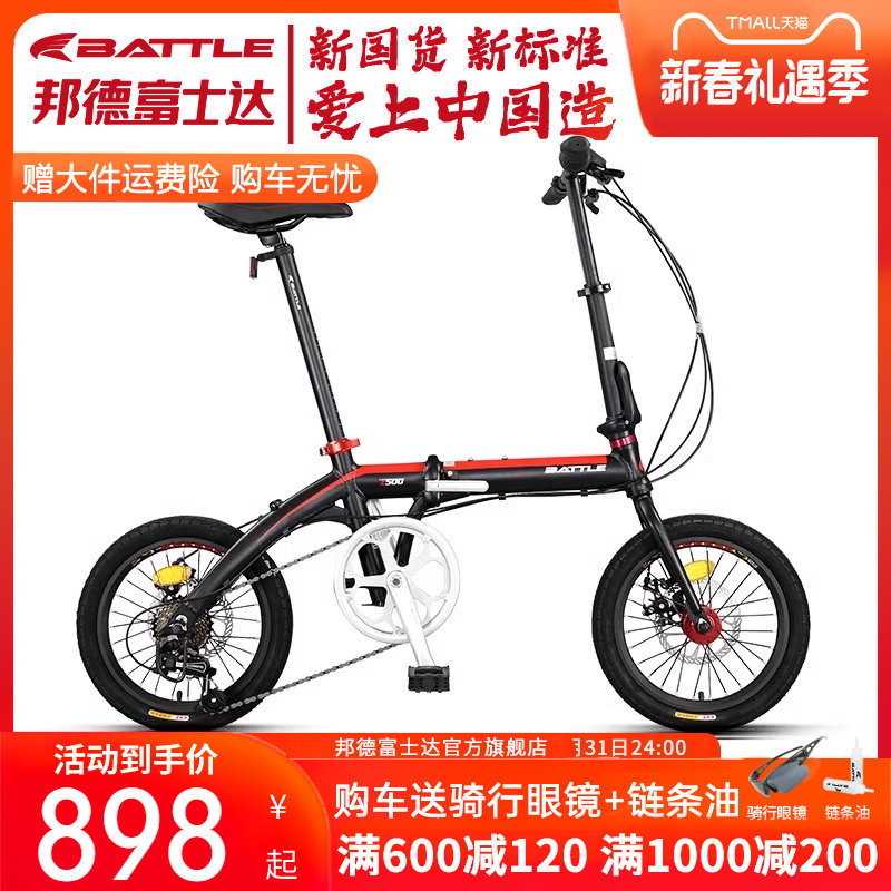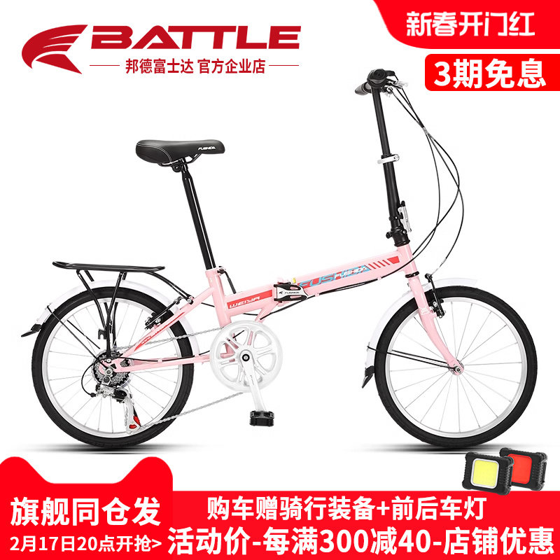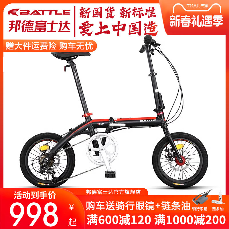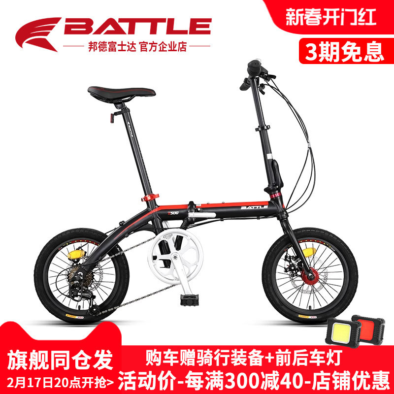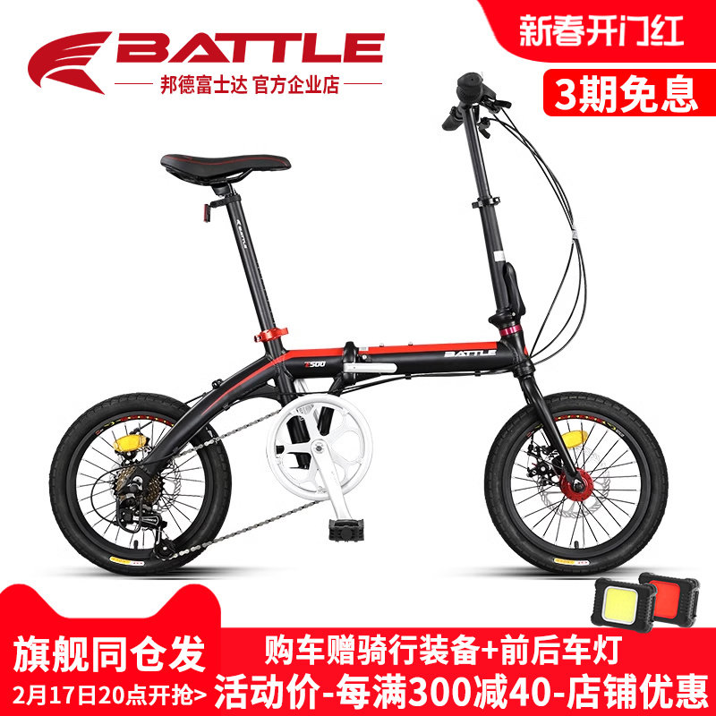 官方旗舰店富士达16寸折叠自行车铝合金超轻便携式BATTLE成人单车