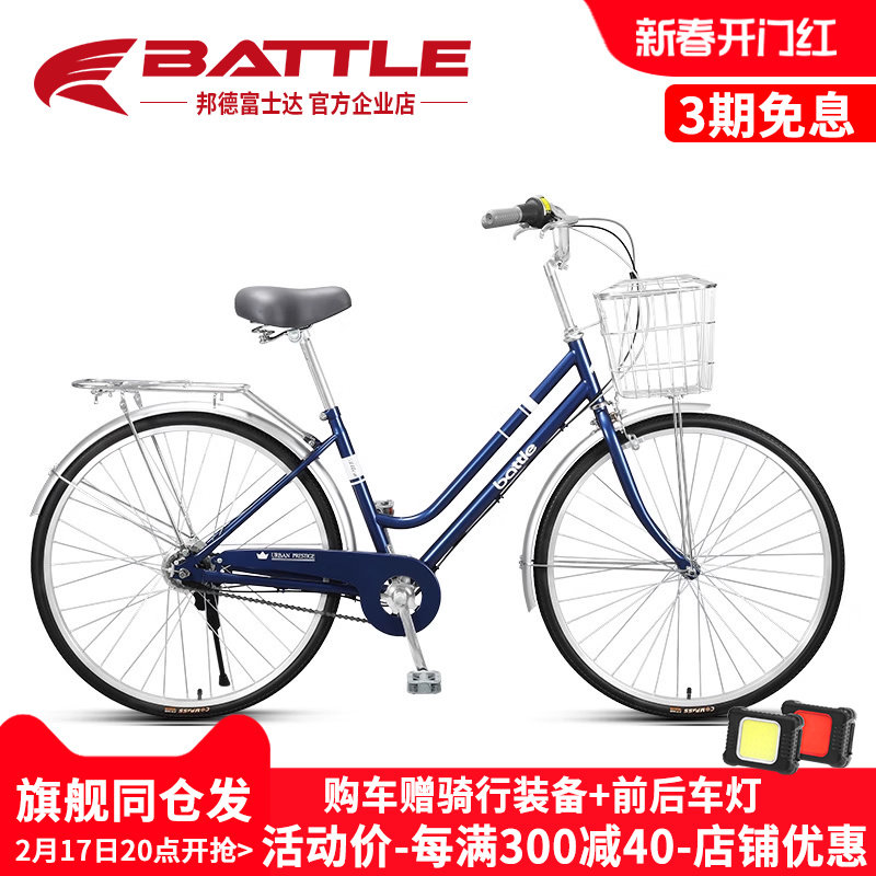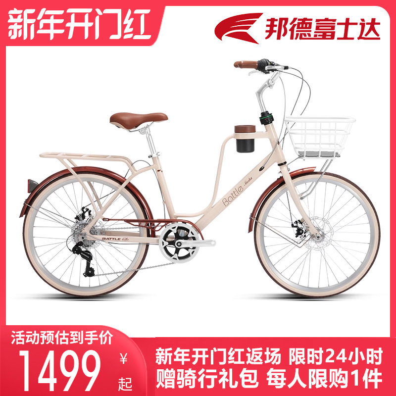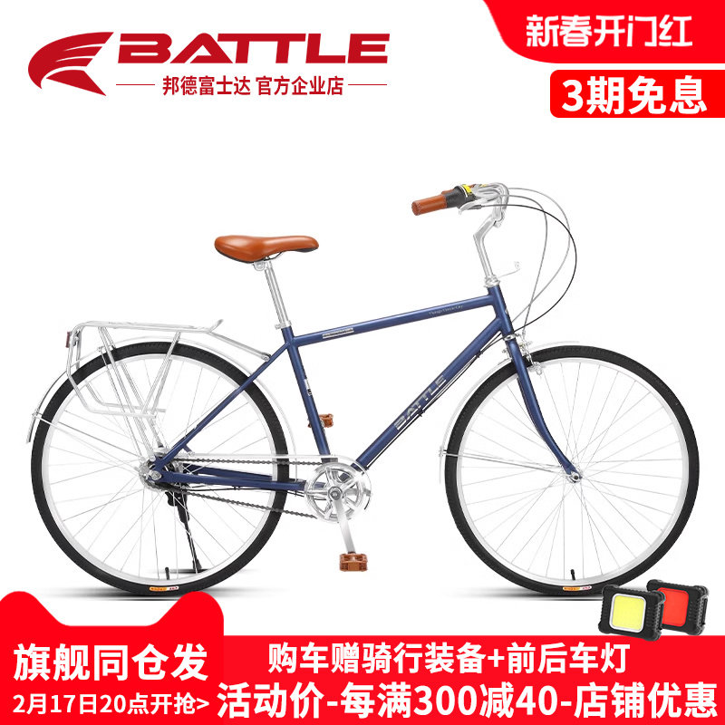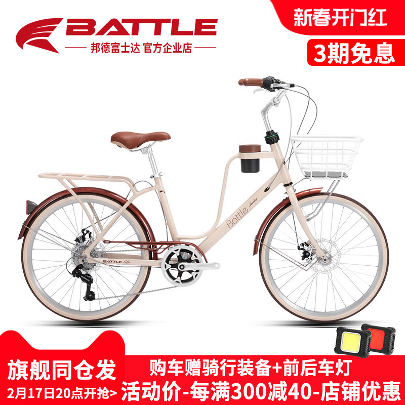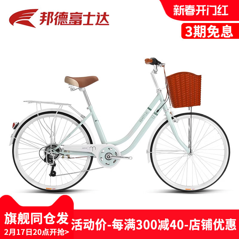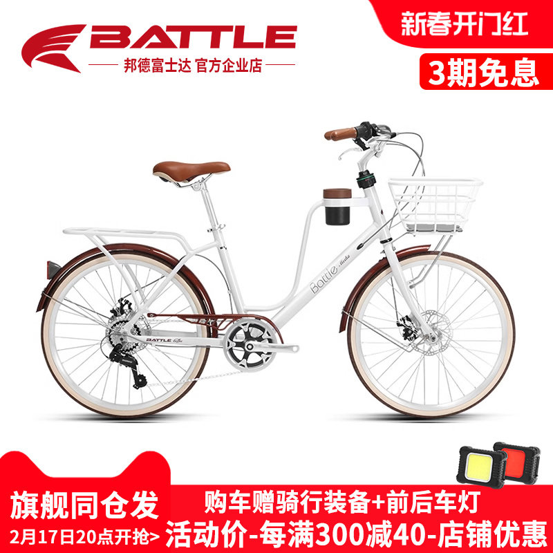 富士达通勤自行车女款轻便车复古变速城市骑行代步女生单车battle