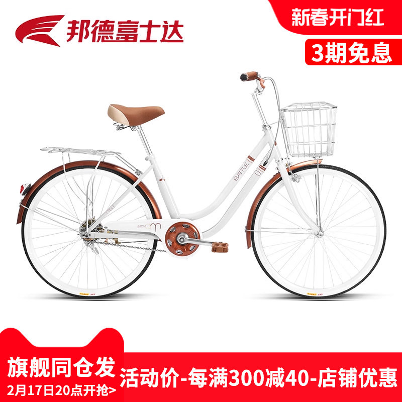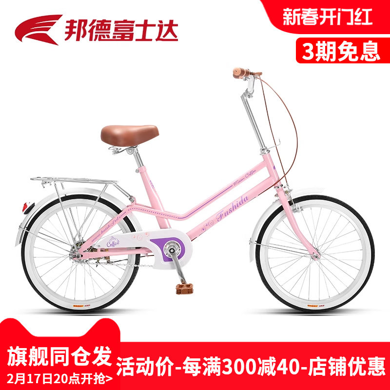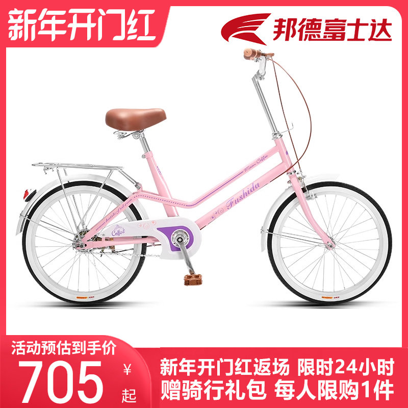 官方旗舰店富士达自行车女式款学生代步超轻便通勤买菜车复古单车