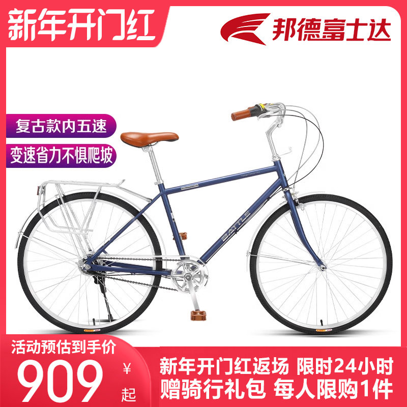 富士达英伦复古城市自行车内变速通勤车26寸男女轻便成人代步单车