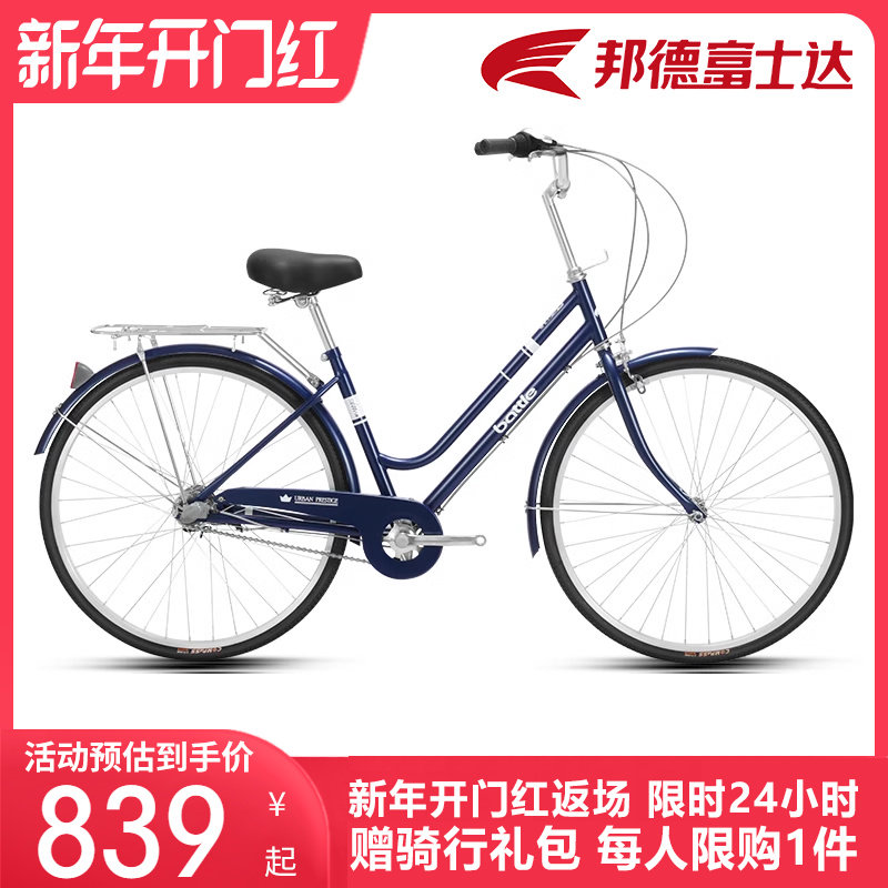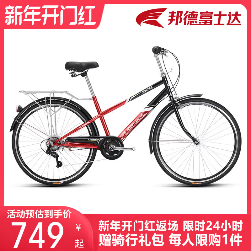 富士达通勤自行车女士复古城市骑行淑女男式学生上班代步轻便单车