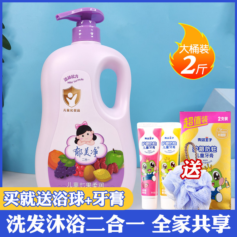郁美净七果儿童洗发水沐浴露二合一2合1宝宝清爽泡泡浴1kg大瓶装