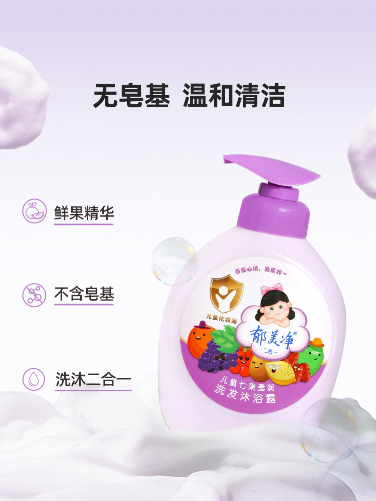 郁美净七果儿童洗发水沐浴露国货二合一2合1宝宝清爽泡泡浴专卖店