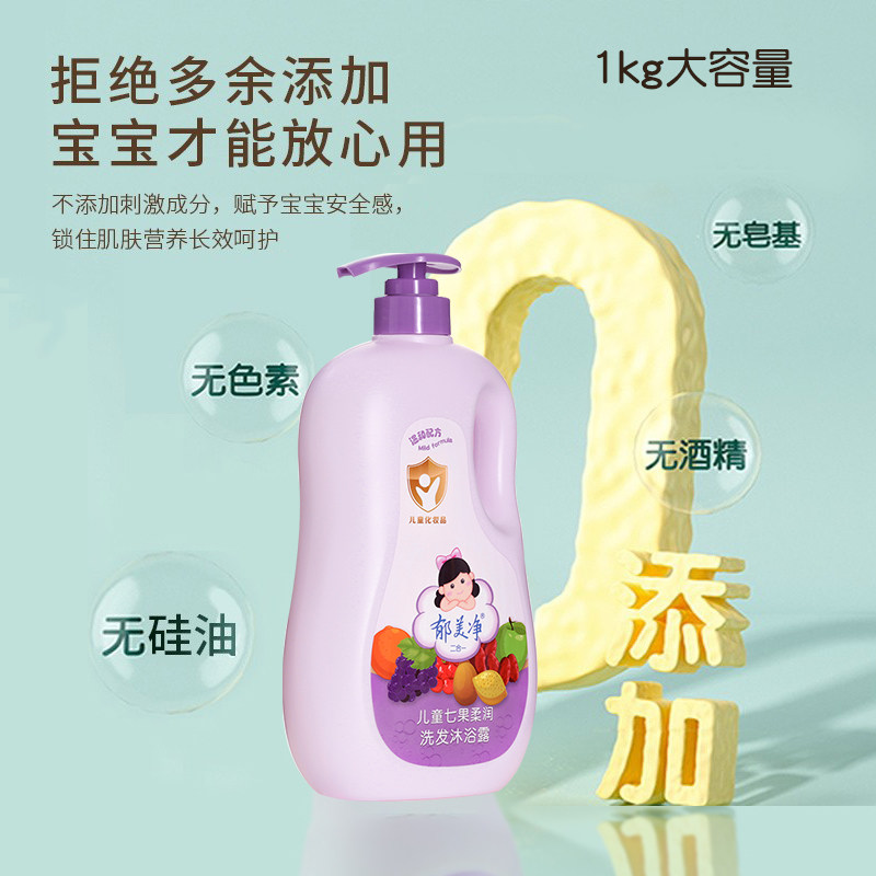郁美净七果儿童洗发沐浴2合一1kg宝宝泡沫沐浴露洗发水无硅油国货