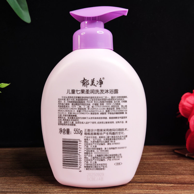 郁美净儿童七果柔润洗发沐浴露550g宝宝洗发水沐浴液二合一泡泡浴