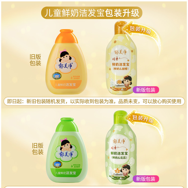 郁美净儿童鲜奶洁发宝 无泪配方洗发露水 国货护肤品老牌花蕊甜橙