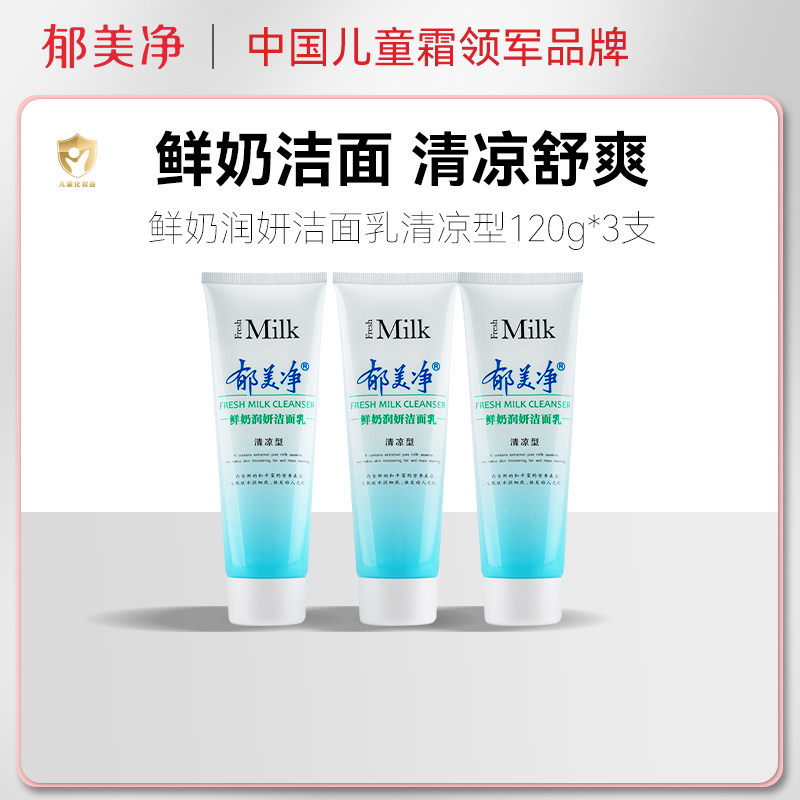 郁美净鲜奶润妍洁面乳清凉型120g*3支深层清洁毛孔清凉温和洗面奶