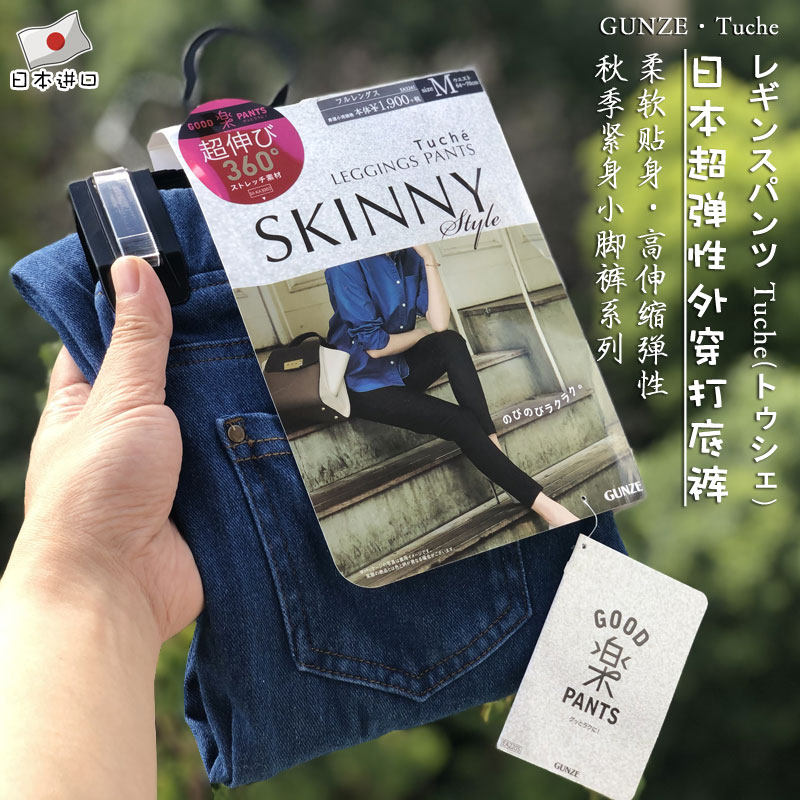 外穿打底裤日本郡是gunze九分女裤弹力长裤秋冬牛仔裤加绒小脚裤